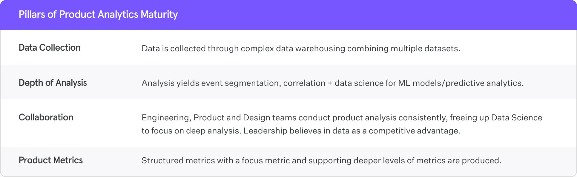 Example of Expert product analytics maturity